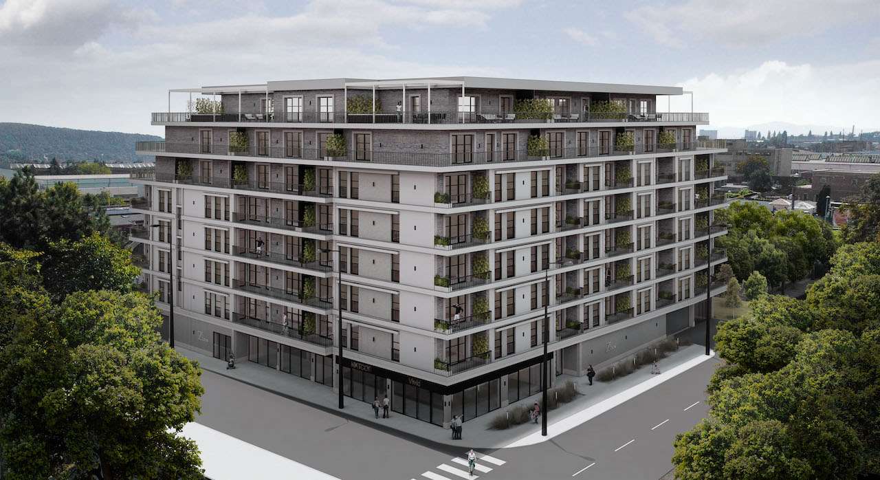 o Sekcia A (pozostáva pozdĺž Holubyho ul.): 5 nadzemných podlaží, plus ustupujúce 6., 7. a 8. podlažie s terasami.