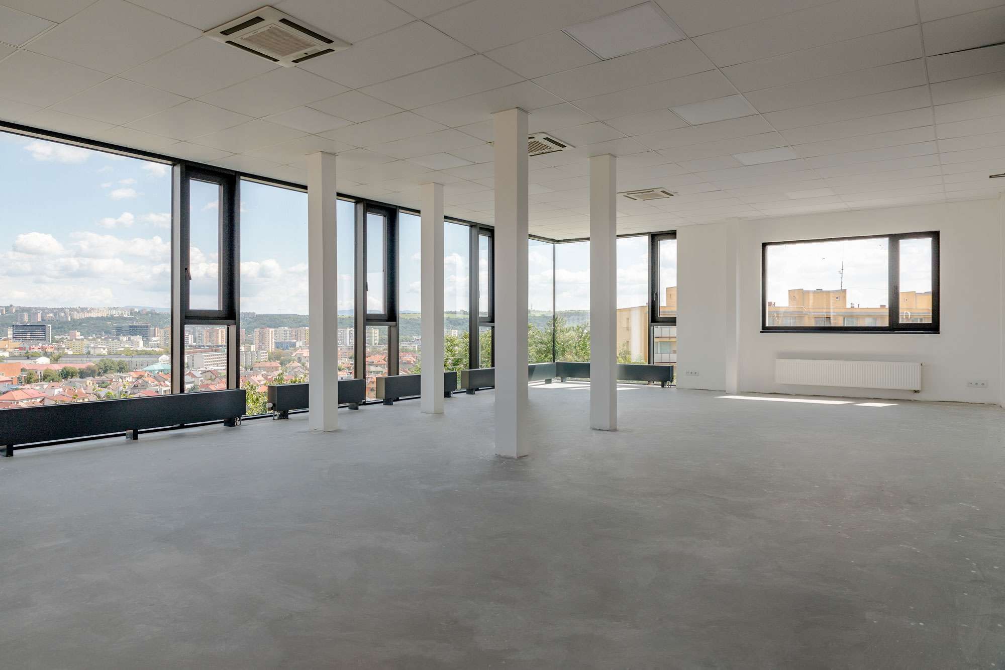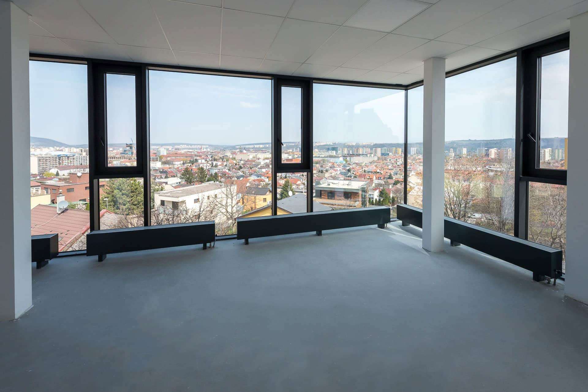Tento exkluzívny priestor disponuje preskleným portálom a presklenou fasádou, ktorá ponúka panoramatický výhľad na mesto Košice a zabezpečuje dostatok denného svetla.