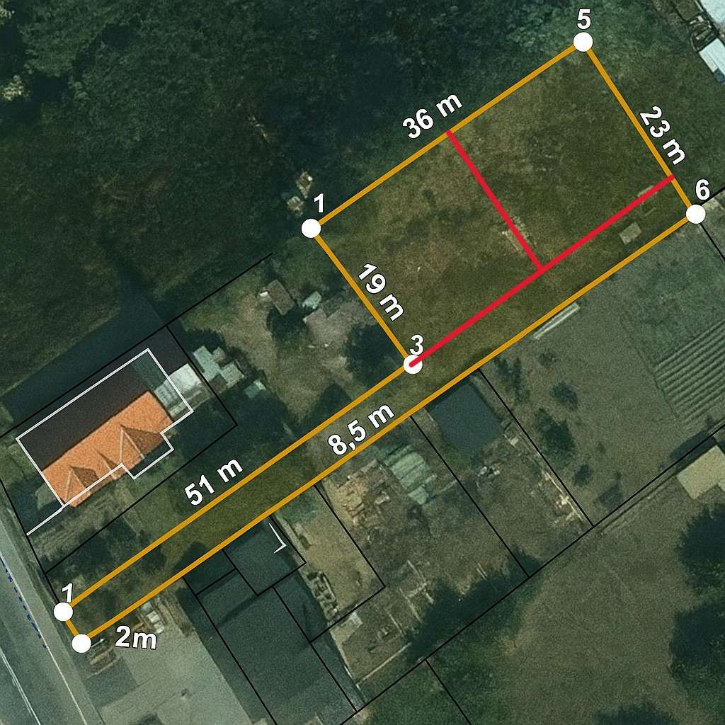 Pozemok je vhodný na výstavbu jednej polovice dvojdomu a to aj dvojpodlažného či s obytným podkrovím.